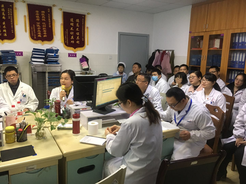 天上飄著毛毛細(xì)雨,夾雜著絲絲冬天的涼意,但絲毫不減我院老年醫(yī)學(xué)科醫(yī)護(hù)人員的學(xué)習(xí)熱情。查房現(xiàn)場(chǎng),學(xué)習(xí)氛圍濃厚,討論熱情高漲,讓醫(yī)學(xué)課堂活在了我們的臨床中,使參與的年輕醫(yī)護(hù)人員受益匪淺。參加本次疑難病歷討論會(huì)的有老年醫(yī)學(xué)科、綜合科各科室主任、負(fù)責(zé)醫(yī)師、部分住院醫(yī)師和護(hù)士。并特意邀請(qǐng)檢驗(yàn)、影像、臨床藥學(xué)、康復(fù)科等醫(yī)技科室醫(yī)師參與。質(zhì)控科何杰科長(zhǎng)、護(hù)理部王宏主任也親臨現(xiàn)場(chǎng)觀摩、指導(dǎo)。